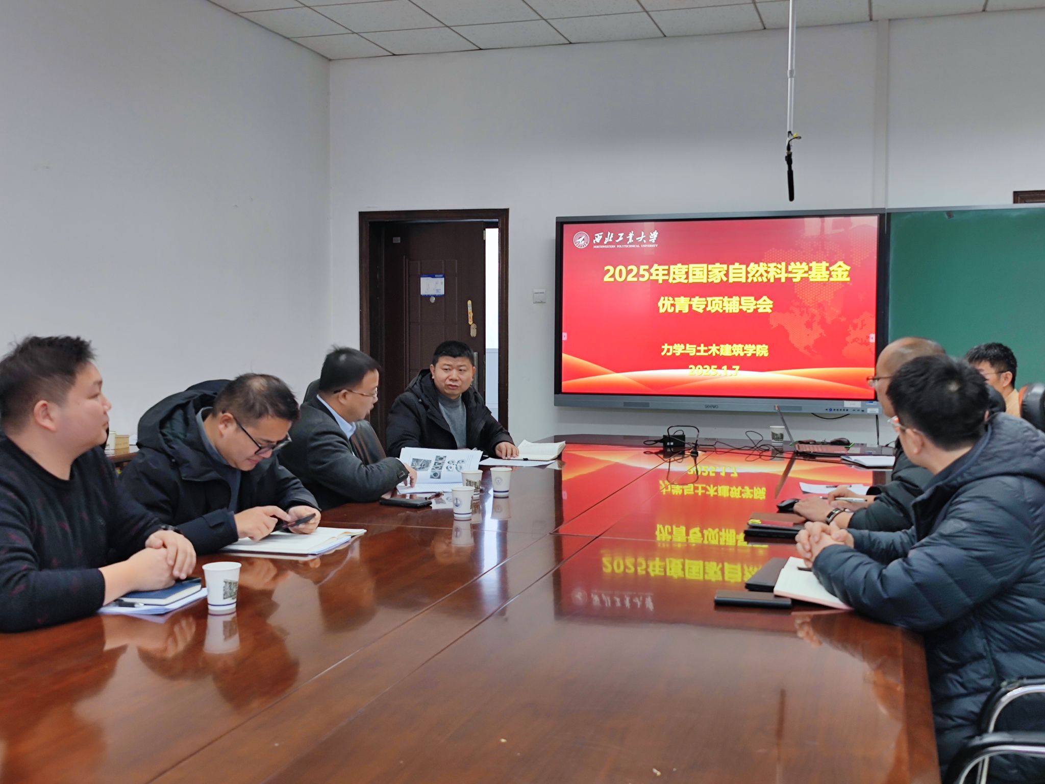 为深入贯彻落实学校第十四次党代会精神,提高学院基础研究组织化程度,助力青年人才学术能力发展,1月7日,力学与土木建筑学院召开了2025年国家自然科学基金优青项目专项辅导交流会,特邀请西安交通大学机械工程学院副院长,国家杰出青年科学基金获得者贺健康教授,为学院优青项目申报者进行一对一的交流辅导。会议由副院长温志勋主持。