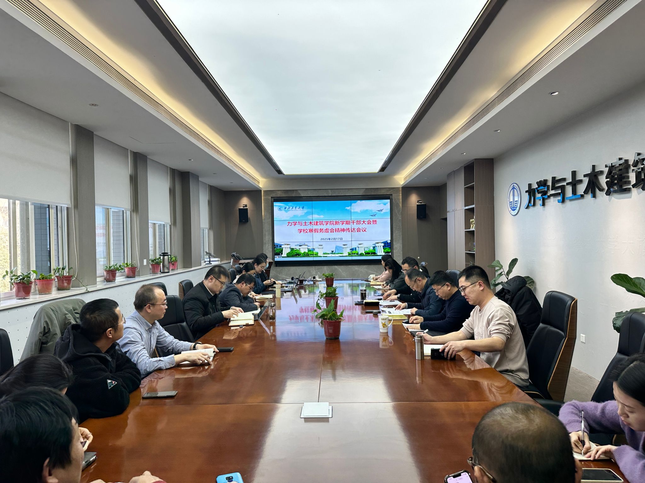 2月17日下午,力学与土木建筑学院在206会议室组织召开新学期干部大会暨学校寒假务虚会、新学期中层干部会精神传达会议,研究部署贯彻落实举措。学院班子成员、院长助理、系主任、教师党支部书记、院办秘书参加会议,会议由学院党委书记巨维博主持。