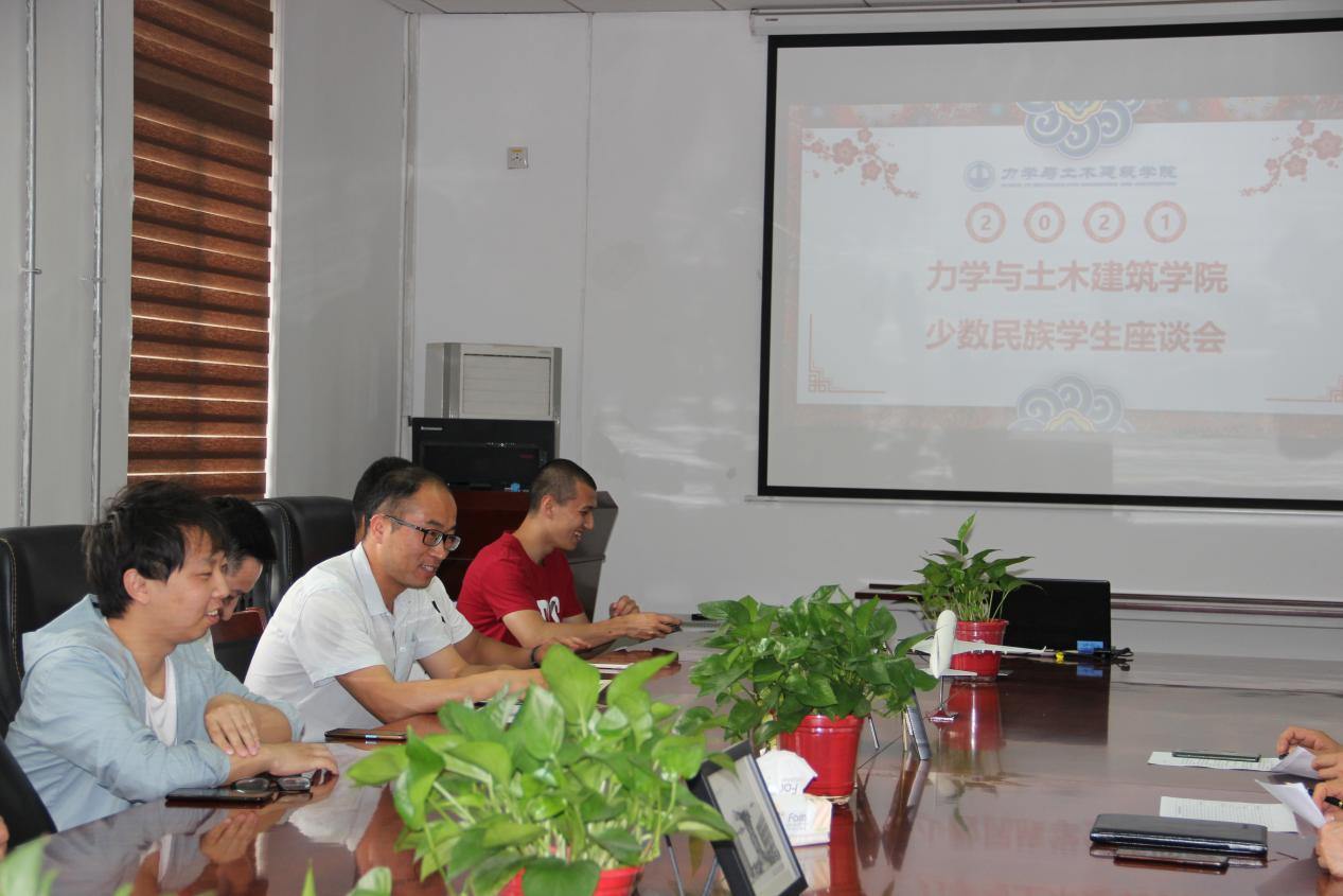 力学与土木建筑学院于2021年5月21日在学院楼206会议室召开少数民族座谈会,学院党委副书记(主持工作)巨维博、党委副书记乔吉超,18级辅导员李世洋,19级辅导员萧业和部分少数民族学生出席了此次会议。