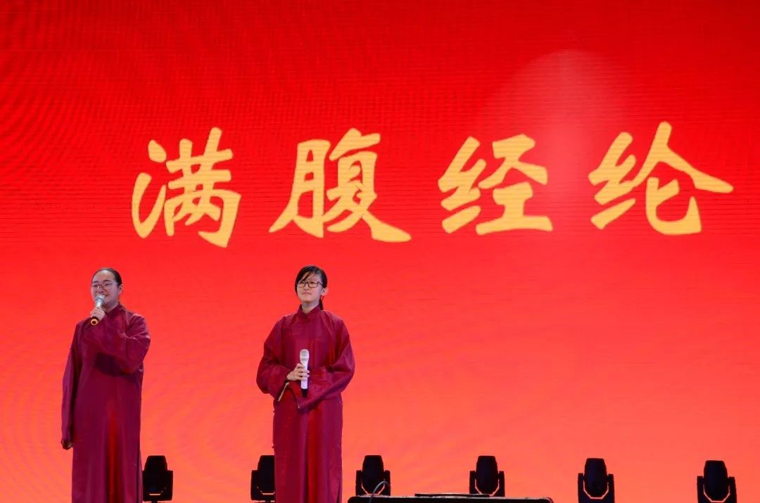 现场不仅有视听盛宴,还有许多有趣的语言类节目。相声《满腹经纶》、话剧《越光宝盒》笑点十足,同学们笑声掌声不断。跌宕起伏的故事情节设计搭配真实自然的表演,辅以演员与同学们的积极互动,赢得观众们一阵又一阵的喝彩。晚会还特别添加了现场互动环节,上墙抽奖活动极大的调动了同学们的积极性,晚会现场不时掀起一波又一波的狂潮。