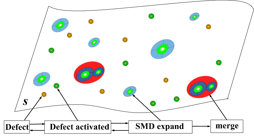 本研究旨在提供了一个基于分级关联原子运动的非晶态物质变形理论框架,以定量描述金属玻璃中的非弹性变形。缺陷浓度作为序参量,随温度和非弹性应变而演化。通过分级关联原子运动理论,我们推导了非晶合金中局部剪切事件特征时间的演化,这些事件涉及流动缺陷的激活、生长和湮灭,相关概念在之前的平均场理论中并未考虑。当前的理论框架可对小应变的线性粘弹性动态力学响应和大应变非弹性变形行为(蠕变、应力松弛)进行描述,进一步为理解非晶态物质的弛豫现象和非弹性变形行为的微观机制提供新的视角。