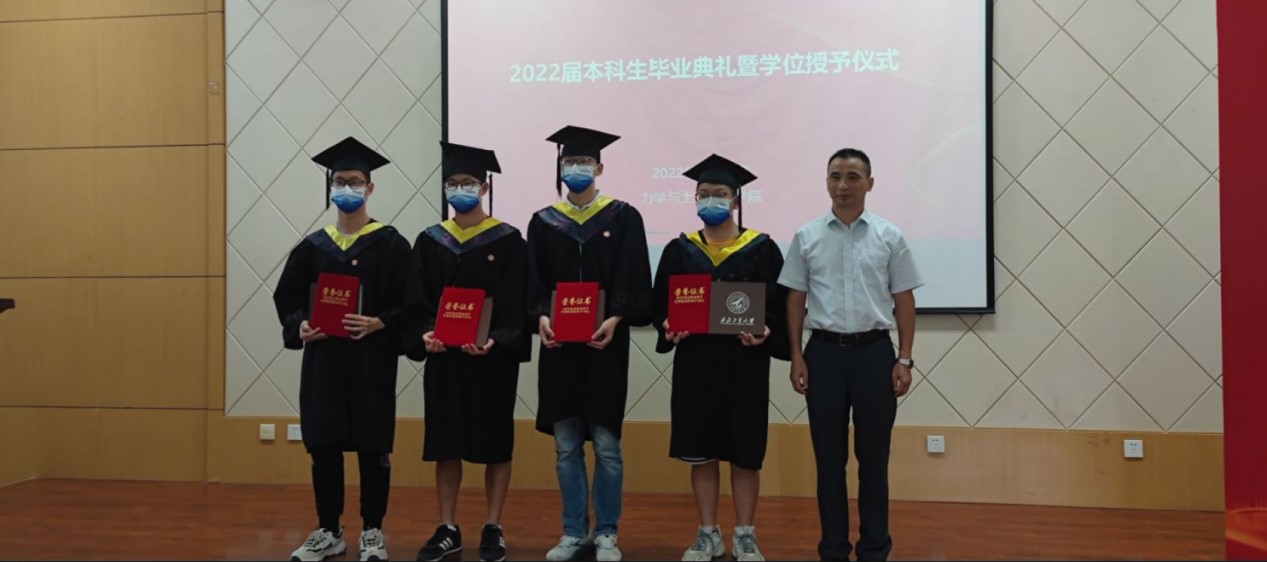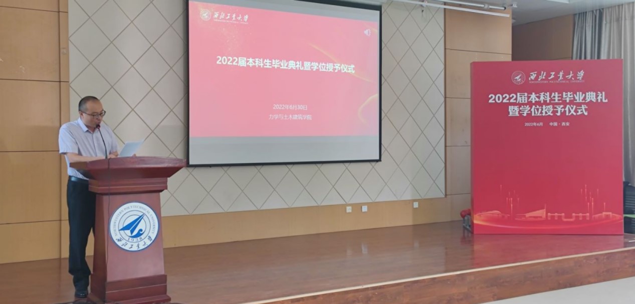 2022年6月30日上午10:00,yl6809永利集团力学与土木建筑学院2022届本科生毕业典礼暨学位授予仪式在学院楼报告厅隆重举行。力学与土木建筑学院院长李栋,党委书记巨维博,毕业班辅导员尉亚军、李世洋,毕业班班主任邹海林、武韬、宋戈等出席本科生毕业典礼,毕业典礼由学院党委副书记乔吉超主持。为满足因故未到场学生和家长们的需求,本次毕业典礼同步采用视频号直播方式进行。