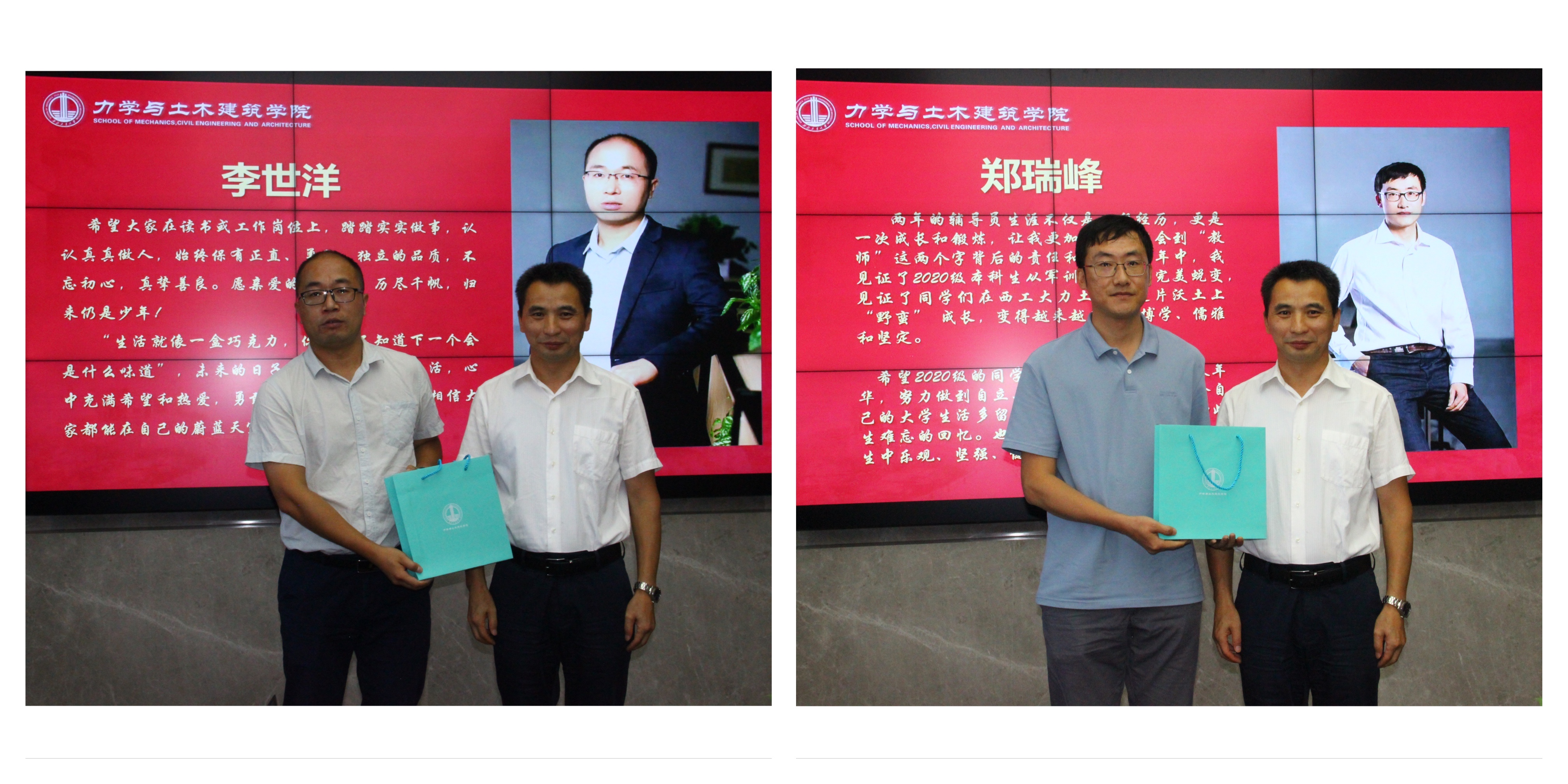 会议第四项,学院为转任辅导员李世洋、郑瑞峰两位青年教师颁发纪念品,感谢他们在担任辅导员期间对学生的辛勤付出,祝愿他们在今后的教学、科研工作中继续发光发热。在本次会议上,学院还迎来了两位新任兼职班主任,学院将聘任学校出版社社长高大力老师和教务处姚尧老师为学院新任兼职班主任,巨维博书记为两位老师颁发了聘书,并对两位老师支持学院人才培养工作表示了诚挚的感谢。高大力老师表示,非常亲切重新回到学院担任兼职班主任,新生入学第一年是非常重要的时间阶段,感谢学院的信任,也会勇挑重担,为人才培养工作贡献力量,同时祝愿学院持续蓬勃发展,蒸蒸日上。