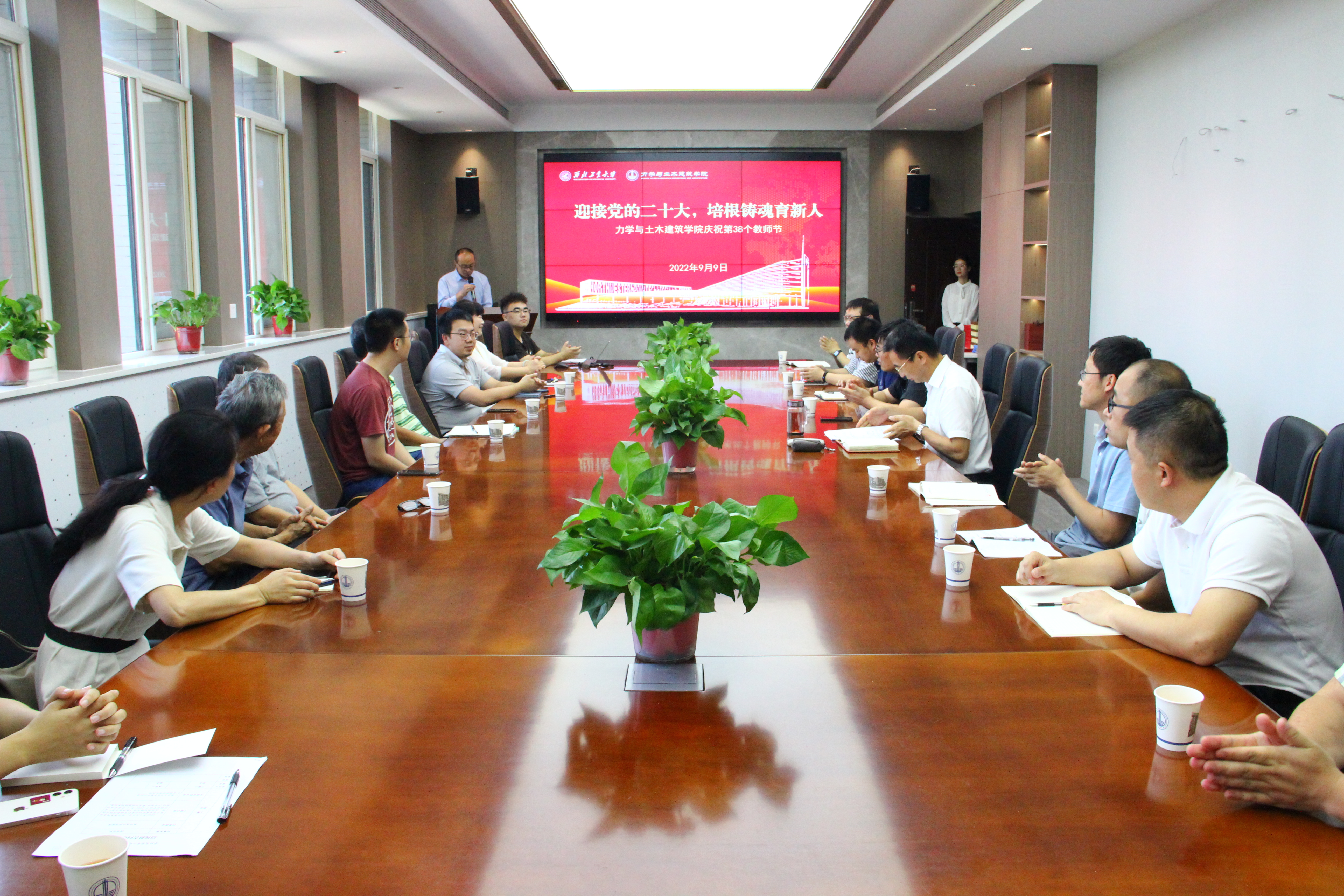 金秋时节,硕果累累,9月9日上午力学与土木建筑学院组织召开了教师代表座谈会热烈庆祝第38个教师节的到来。会议中学院对年度获奖教师进行了表彰,为从教整周年、转任辅导员举办了纪念仪式,为新任兼职班主任举办了聘任仪式,组织开展了新进教师的入职仪式并进行了师德师风警示教育培训。学院党委书记巨维博、党委副书记乔吉超、副院长李磊、张凯、入职整周年教师、退休教师代表、转任辅导员、新聘任兼职班主任和新进教师代表参加了此次会议。会议由乔吉超副书记主持。