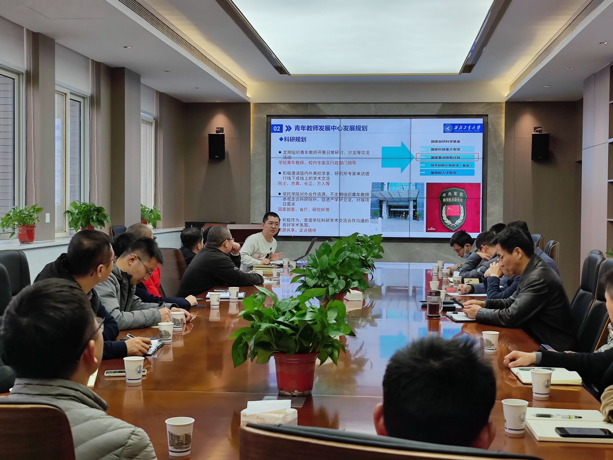 路宽从发展规划、阶段性成果、发展目标几个方面对青年教师发展中心做了汇报,表示今后将积极组织青年教师,青年硕、博导师开展学术交流,走访科研院所,对接项目需求,为青年教师的发展提供有力支持。