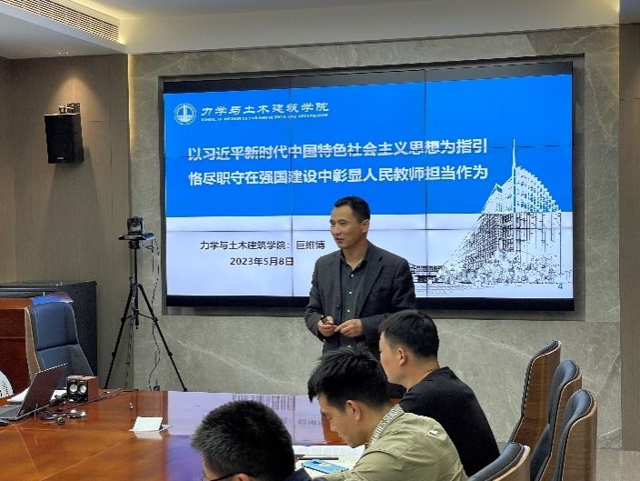 随后巨维博为与会师生开展党风廉政和师德师风专题教育,讲授《以习近平新时代中国特色社会主义思想为指引 恪尽职守在强国建设中彰显人民教师担当作为》主题党课。通过带领师生共同学习《中国共产党廉洁自律准则》《新时代高校教师职业行为十项准则》《研究生导师指导行为准则》等文件精神,学习师德优秀典型先进事迹,开展师德师风和党风廉政警示教育,激励教师争做“四有好老师”,勇担学生成长路上的“四个引路人”,坚持“四个相统一”,为落实立德树人根本任务,培养德智体美劳全面发展的社会主义建设者和接班人贡献力量。