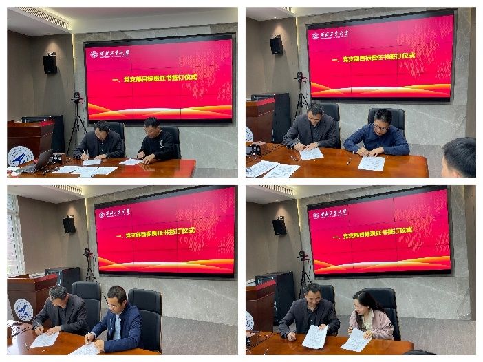 会议首先进行党支部目标责任书签字仪式,学院党委书记巨维博逐一和党支部书记签订目标责任书,并对各支部推进落实目标任务提出工作要求。他指出与师生党支部签订目标责任书是学院党委2023年一项重要工作,通过将支部年度目标和推进落实学校“四个行动计划”结合起来,和学院揭榜挂帅结合起来,和学院中心工作结合起来,和强化基层党支部建设结合起来,进一步明确细化党支部中心工作,量化目标任务,激发支部活力和党员积极性,落实责任到支部每一位党员,高质量推进学院标志性成果产出,发挥基层党支部战斗堡垒作用和党员先锋模范带头作用。各党支部书记表示将积极按照任务书目标开展工作,落实任务到人,以昂扬的斗志,扎实的作风真抓实干推进学院各项事业高质量发展。