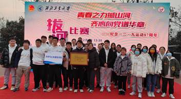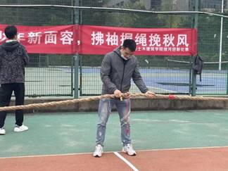 组织了新生拔河比赛,促进学生和谐相处、互帮互助。深入学生新生杯篮球、足球和橄榄球比赛一线;以身作则,坚持体育锻炼,积极参加学校组织的“党旗跑”和“一二九”拔河比赛等活动,用自己的实际行动激励学生,使学生勇夺新生杯篮球赛和“一二九”拔河比赛季军。
