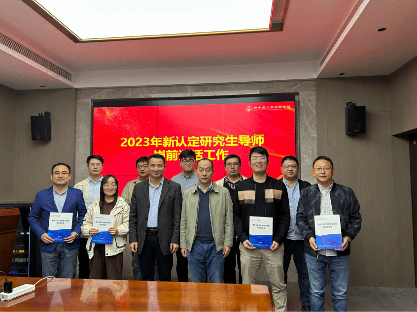 谈话结束后,新认定的八位导师签署了岗位责任书并合影留念。