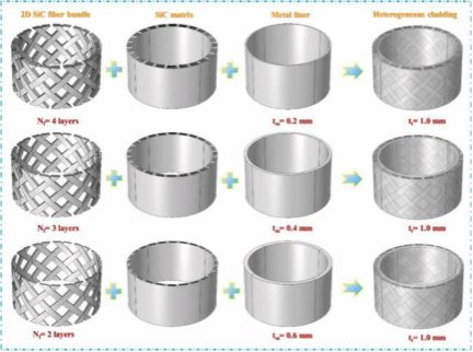 图1. 由二维编织的复合材料和不同厚度的金属衬层复合而成的异质包壳结构