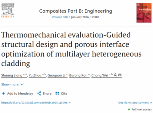 引用本文:Liang S, Zhou Y, Li G, et al. Thermomechanical Evaluation-Guided Structural Design and Porous Interface Optimization of Multilayer Heterogeneous Cladding[J]. Composites Part B: Engineering, 2025,308:113006.