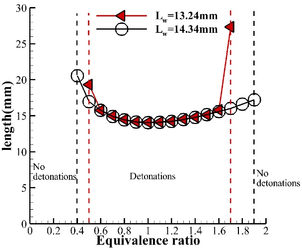 针对不同当量比下斜爆轰起爆机理,研究发现贫燃和富燃都导致诱导区温度降低且诱导区长度增加,进而导致斜爆轰不起爆。研究成果以“Study of the features of oblique detonation induced by a finite wedge in hydrogen-air mixtures with varying equivalence ratios”为题发表在国际顶级期刊《FUEL》(Top,影响因子5.8),论文链接https://doi.org/10.1016/j.fuel.2019.116854