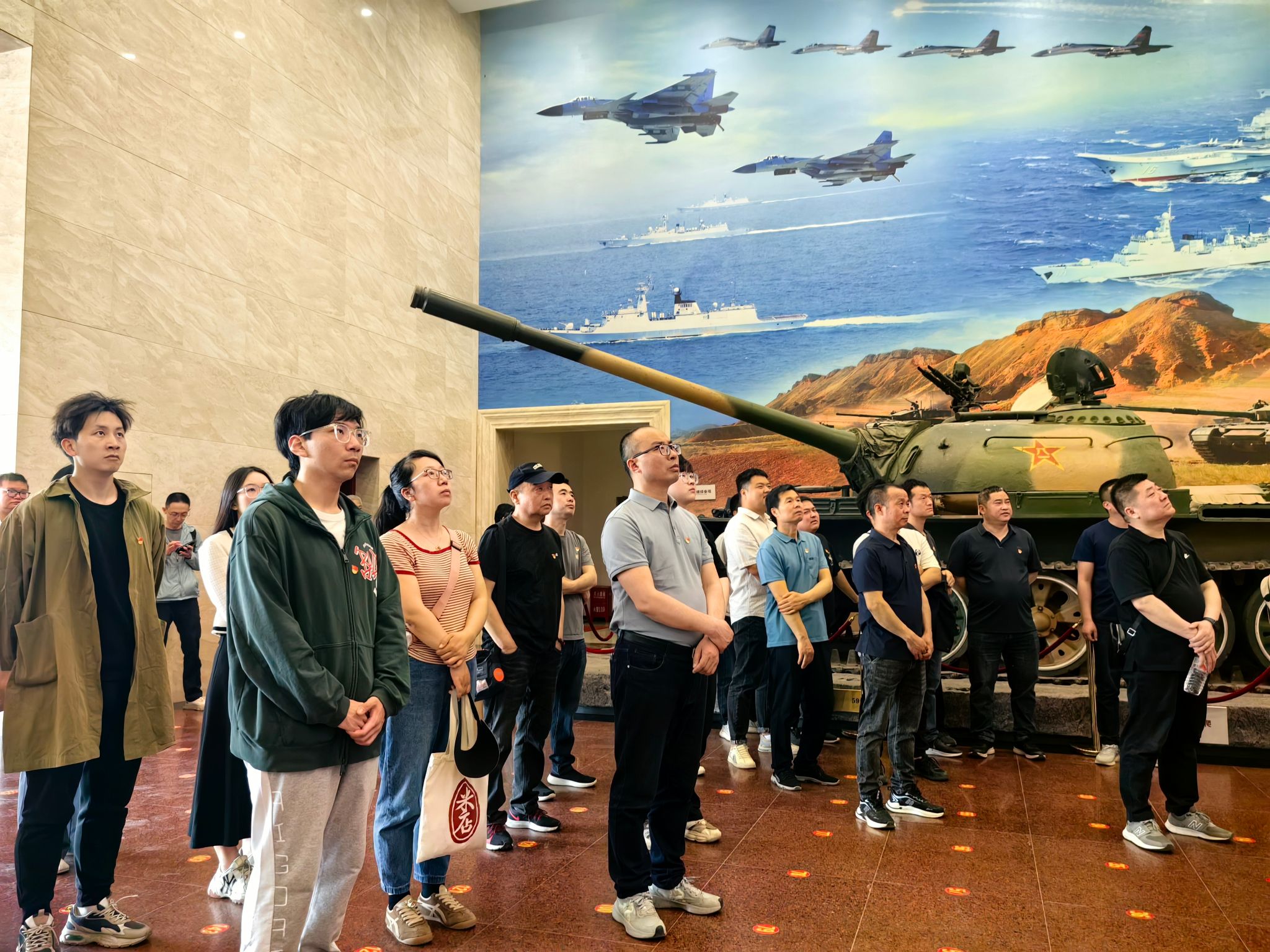 下午,一行人前往渭南市军事博览园,实地感受我国国防军队建设的辉煌成就。在国防教育馆,通过影像资料和实物展陈,大家回顾了人民军队从无到有、由弱到强的奋斗历程,对国家国防建设发展历程有了直观而深刻的认识。在武器装备展示区,大家近距离观摩了退役军舰、战机等军事装备,虽然很多型号已经停产退役,却依然无声地讲述着当年战场上的故事,警醒大家“天下虽安,忘战必危”的道理。