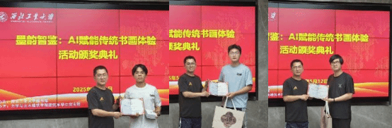 2025年5月12日下午,由校图书馆主办,力学与土木建筑学院建筑系学生党支部承办的“墨韵智鉴:AI赋能传统书画体验”校园阅读文化节活动圆满落幕,学院成功举行了颁奖仪式,颁奖仪式由学工主管王涵晶主持,学院党委副书记路宽为各位获奖同学颁奖。