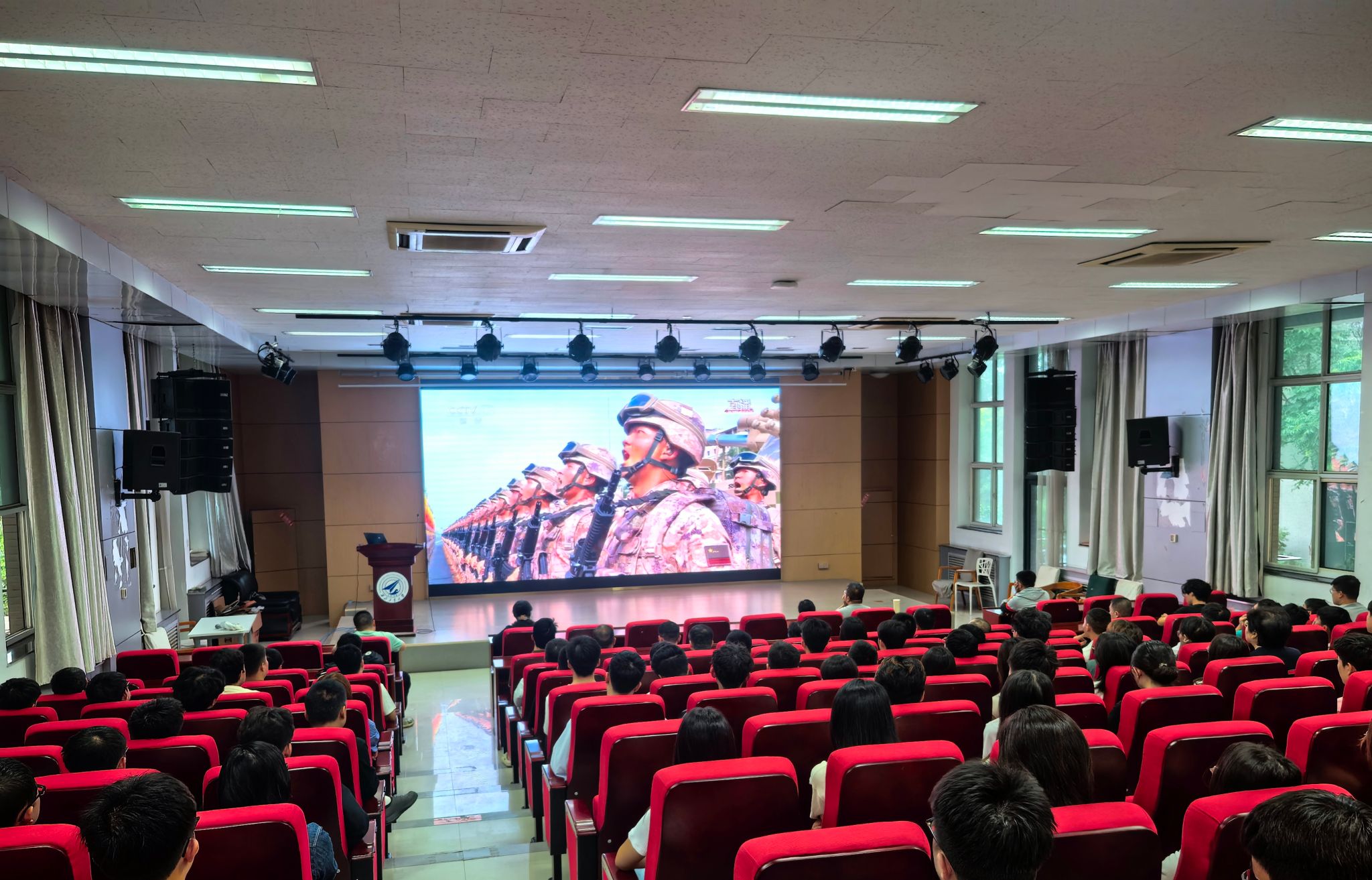 上午9时,大会直播准时开始。学院206会议室、学术报告厅、延安精神党员活动室座无虚席,全院师生认真聆听习近平总书记重要讲话,观看阅兵式见证国家雄伟力量。当镜头掠过抗战老战士老同志,当嘹亮的军歌响彻天安门广场,当步履矫健的作战方队和现代化军事装备精彩亮相,师生深刻感受到中华民族在抗日战争中展现出的 “天下兴亡、匹夫有责” 的爱国情怀与工大人献身军工国防的使命担当。