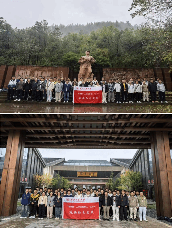 抵达延安后,师生一行首先来到延安革命纪念馆。馆前毛泽东雕像巍然屹立,庄严肃穆。在讲解员的引导下,师生共同回顾了延安从贫瘠之地发展为革命圣地,再到如今“三山两河、绿满城乡”的沧桑巨变,深刻体悟历久弥新的延安精神。
