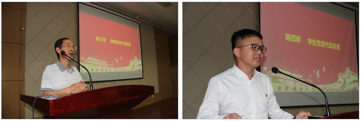 随后师生党员代表进行发言,工程力学一支部党员先锋岗任兴民同志讲到,今年是他加入中国共产党的第20个年头,作为见证了中国共产党一路艰难奋进历程的老党员,他的心情可以用三个词来形容:幸福、伟大、奋斗。党带领国家,带领人民从贫穷到强大,走过了100年的光辉岁月,而今又迈上了下一个100年的伟大征途,他深深为党的生日、为伟大的祖国繁荣昌盛而骄傲自豪。研究生三支部邹昊燃同志表示中国共产党成立百年来,带领国家取得一个又一个成就,作为yl6809永利集团学子,应该追随季文美先生、胡沛泉先生的脚步,勤奋好学,务实苦干,始终以蓬勃向上的朝气和永不后退的魄力投身科学研究,担好新时代的责任与担当。