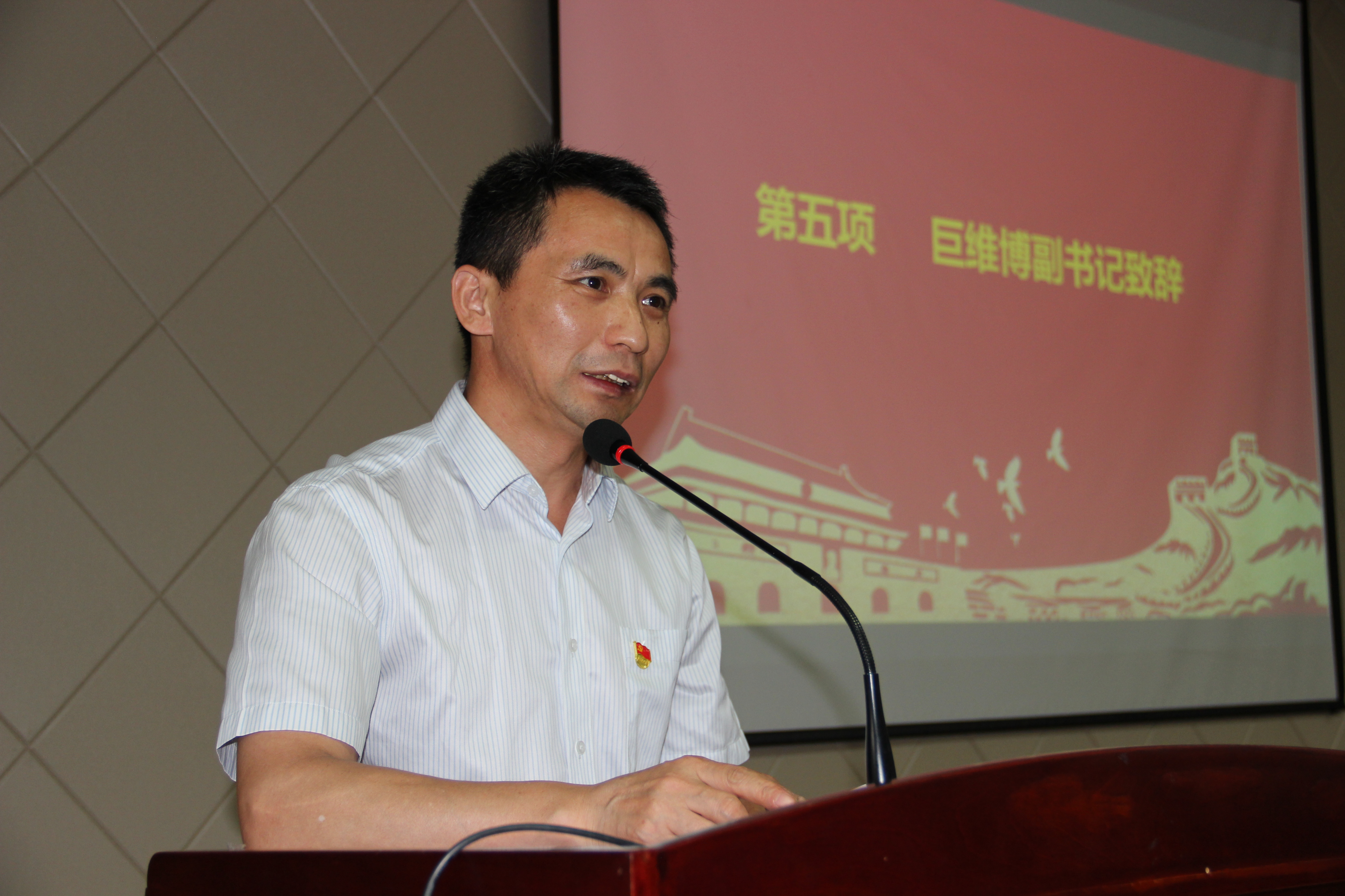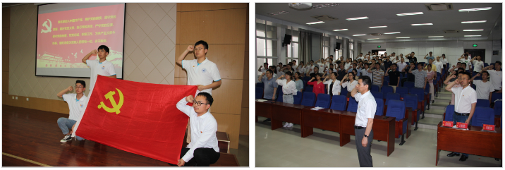 最后学院党委副书记(主持工作)巨维博同志带领与会党员面向鲜红的党旗重温了入党誓词。