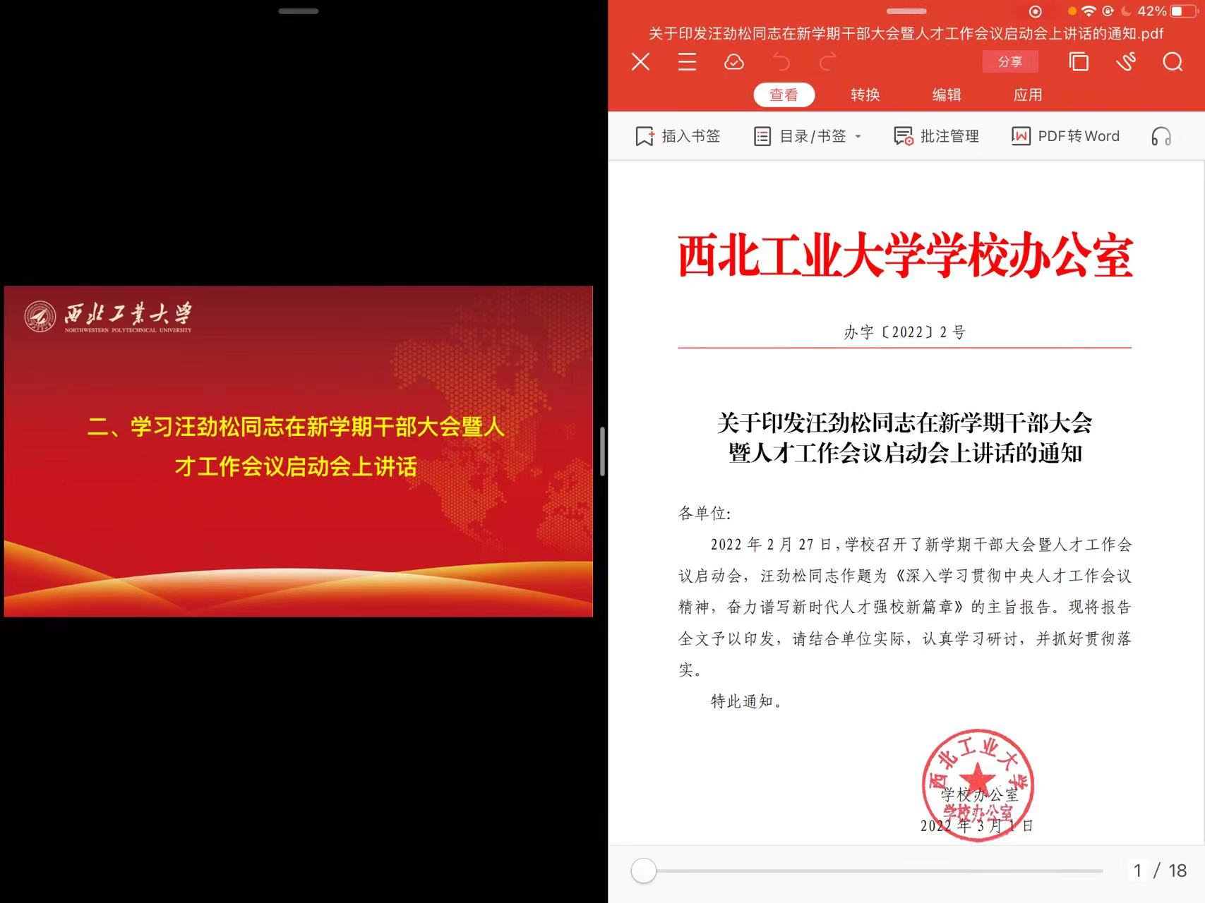 会议第二项巨维博同志带领与会人员学习了汪劲松同志在新学期干部大会暨人才工作会议启动会上讲话,分别从深入学习领会中央人才工作会议精神、不断提升高质量做好人才工作的思想自觉和行动自觉,认真总结学院“十三五”以来人才工作取得的成效和存在的不足,深入贯彻落实中央人才工作会议精神、探讨新时代学院人才工作改革思路三大方面传达会议精神。提出全院师生要坚持以习近平新时代中国特色社会主义思想为指导,立足新发展阶段、贯彻新发展理念、服务新发展格局,以新一轮“双一流”建设为契机,做好人才引才、育才工作,为学院建设提供有力的人才支撑。