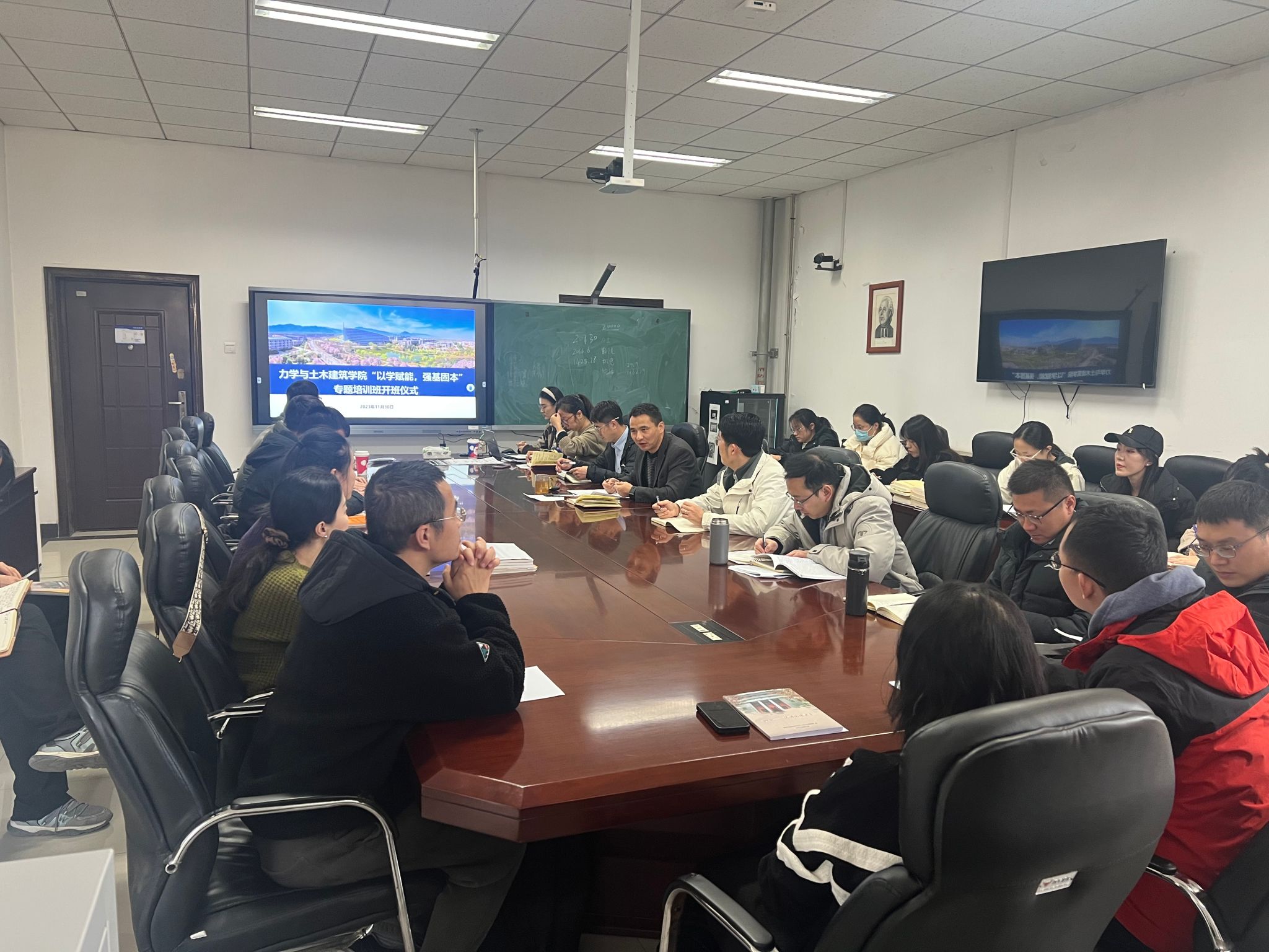 为进一步落实学校党委巡视整改工作,提升学院教职工思想认识水平、业务实践本领和履职尽责能力,力学与土木建筑学院组织举办“以学赋能,强基固本”专题培训班,并于11月30日下午在学院301会议室举行开班仪式暨第一次培训,学院党委书记巨维博、学院近3年新进教师、师生党支部书记、院办秘书参加会议,会议由学院办公室主任常宁花主持。