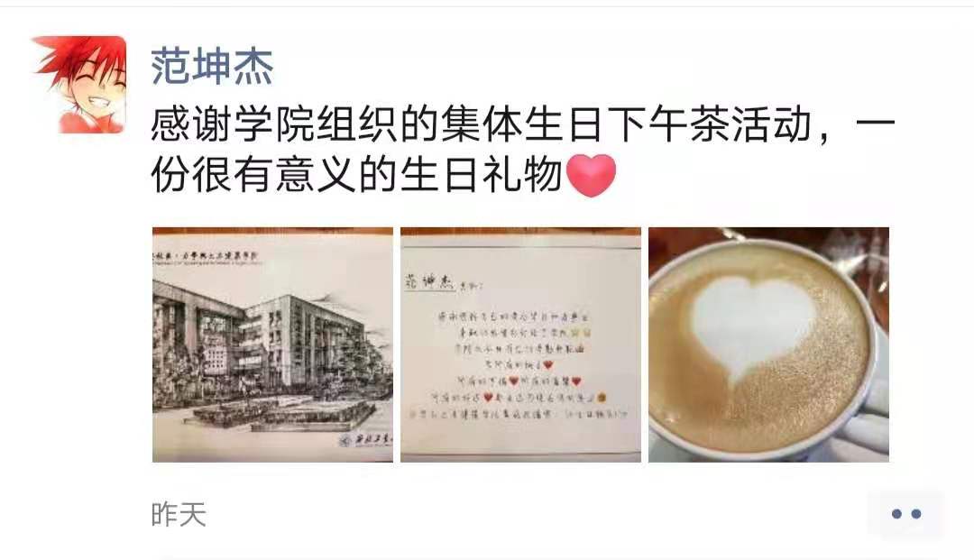 集体生日下午茶活动,增进了老师之间的交流,增强了新教师对学院的认同,更好的丰富了学院文化,力学与土木建筑学院工会将继续办好集体生日下午茶活动,为学院生活添姿加彩。