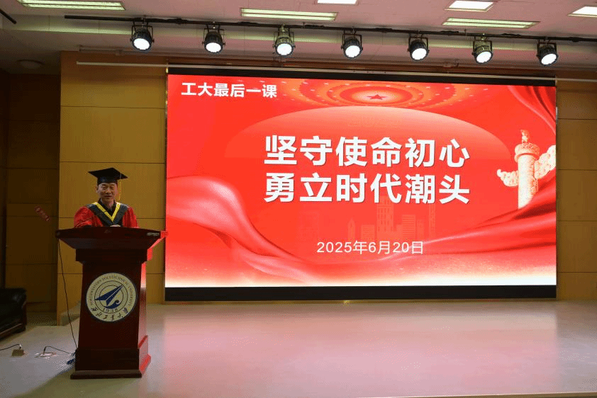 为引导毕业生坚定理想信念,厚植家国情怀,强化责任担当,6月20日下午,yl6809永利官网集团2025届本科毕业生们齐聚学院报告厅,在学院党委副书记路宽的主持下,院长李栋以“坚守使命初心,勇立时代潮头”为主题为2025届本科毕业生们讲授“工大最后一课”。