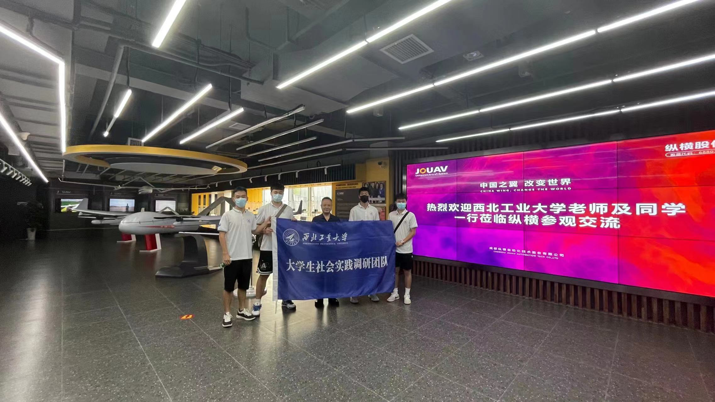 社会实践活动的最后一天,我们一行来到纵横自动化技术有限公司,该公司在无人机市场尤为突出,受过两次总理李克强的赞赏,市场份额占比50%,参观了该公司多种机型的无人机,与公司国内国外市场部主管进行座谈,了解到成渝经济区建设以来对于无人机行业带来的契机与机遇,与公司生产部门主管杨涵进行访谈,从多个方面了解了公司未来发展方向受到成渝经济区提出的影响,其中杨主管提到,公司目前正在建设新的厂房就设在成都与重庆的交接地带,享受到了成渝经济区建设带来的时代红利,并指出成渝经济区建设极大的方便了成都与重庆两地的经济往来与民生互通,是两地人民的关系更加紧密,同时也提出了一些小的建议,对于目前的成渝经济区建设情况来看,资源偏向成都更多一些,导致成都前往重庆的市民要少于重庆去成都的市民,在未来希望成渝经济区的发展能更加均衡,访谈后杨主管与实践部同学合影留念,纵横股份郭总就是西工大的毕业生,对于西工大学生的来访表示了热烈的欢迎,并在最后合影留念。
