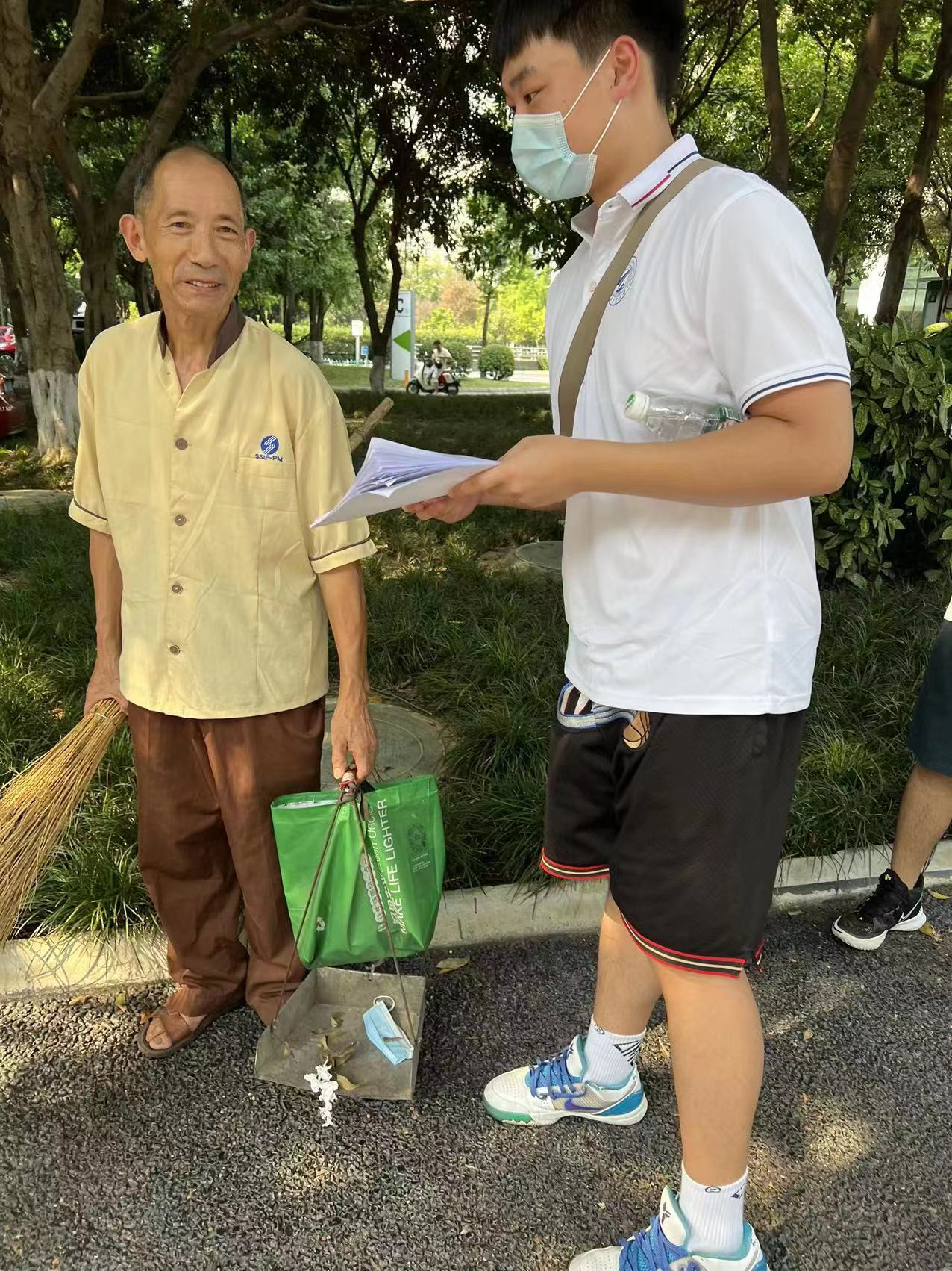 我们首先采访了环卫所书记,了解到工人们每天早上从凌晨四点就开始工作,接下去还要打招三次,一个工人一天要清扫6000平方米,逢年过节,由于垃圾多,环卫工人的工作量是平时的三四倍。听了这些介绍,我知道干净整洁都是环卫工人辛勤打扫出来的。