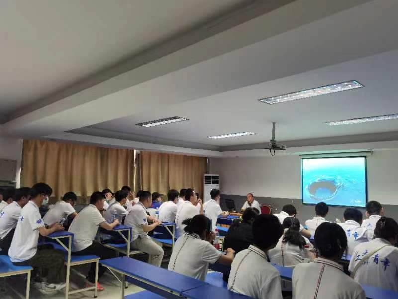 图为实践队集体学习发动机的相关知识和操作注意事项。贾悦 摄