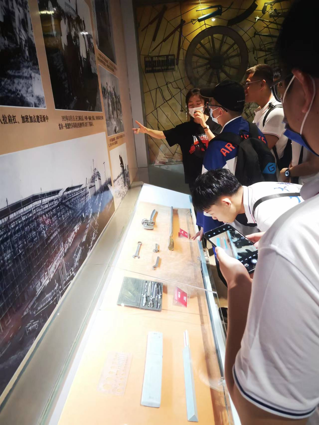图为实践队员在农耕博物馆听讲解员讲述建国初期动力机械行业历史。于昊玉 摄
