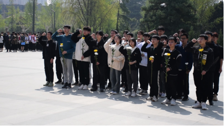 清晨,同学们乘车来到西安烈士陵园,怀着对革命先烈们无比的敬意和无限的哀思,在庄严肃穆的“革命烈士纪念碑”前,举行了简短而又隆重的悼念仪式。由团支书王浩杰同学主持,团员们向烈士默哀一分钟,并为革命烈士敬献花篮与挽联,表示对革命先烈的沉痛悼念和敬仰。随后,由班长马成博同学带领大家重温入团誓词。