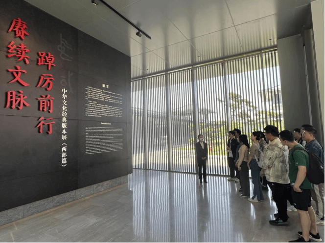 国家版本馆是贯彻落实习近平总书记总体国家安全观,积极推进文化安全顶层设计的战略举措。中国国家版本馆西安分馆(文济阁)由中国工程院院士张锦秋团队设计,规模宏大,庄重典雅,现藏中华经典版本209万册(件),本次研学活动以“赓续文脉,踔厉前行——中华文化经典版本展(西部篇)”为重点。该陈列以中华优秀传统文化的主要经典版本,中国共产党人精神谱系中淬炼灵魂的延安精神优秀版本、体现新时代“五位一体”发展的恢宏巨著,展示中华文化之美,展现历史深厚底蕴,彰显中国文化自信。这是我们中华民族宝贵的遗产,更是我们精神的基底,必将化作中华儿女内心更深沉、更持久的力量,照亮中华民族伟大复兴的新征程。