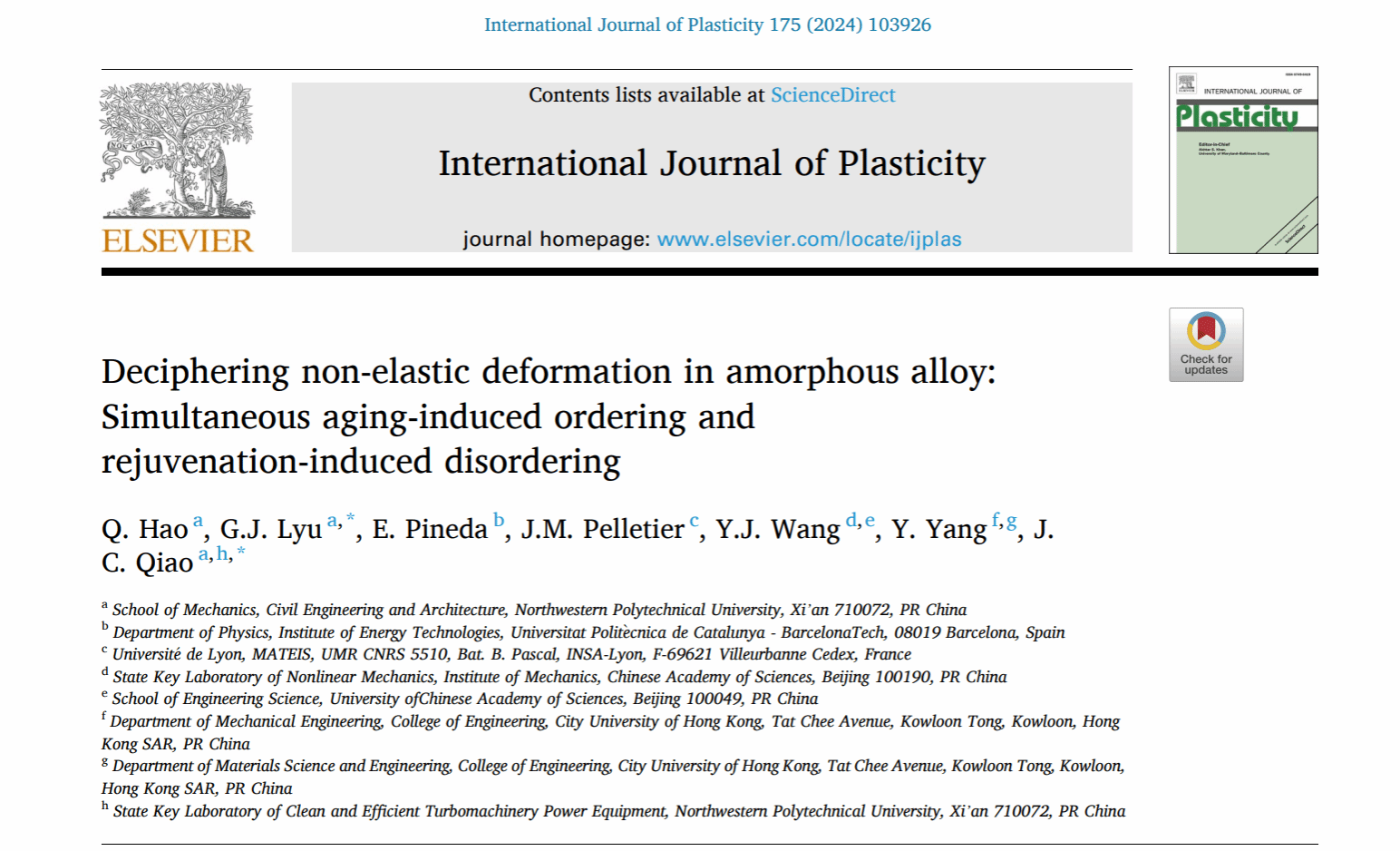 [2] Q. Hao, G.J. Lyu*, E. Pineda, J.M. Pelletier, Y.J. Wang, Y. Yang, J.C. Qiao*, International Journal of Plasticity. 175 (2024) 103926. (https://doi.org/10.1016/j.ijplas.2024.103926)