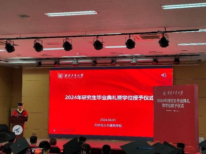 岁月苒苒,韶光匆匆;学成毕业,佳期相送。4月1日上午,力学与土木建筑学院毕业典礼暨学位授予仪式在学院楼报告厅隆重举行,学院党委书记巨维博、学术委员会副主任乔吉超、教师代表、辅导员代表出席本次研究生毕业典礼,仪式由学院党委副书记路宽主持。