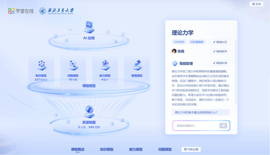 张娟老师在前期数字化教学资源建设基础上建成理论力学AI课程,深入开展数智化教学改革,知识图谱、AI学伴助力学生开展个性化学习。在课程组开展数字化教学改革,持续进行数字化教学改革探索和实践。