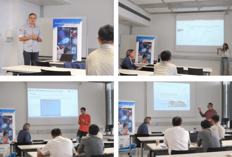 本次研讨会共进行了7个报告。乔吉超教授首先介绍了近14年来和加泰罗尼亚理工大学Daniel Crespo/Eloi Pineda教授团队的合作研究,随后介绍了双方共同开展的关于非晶弛豫、结构非均匀性相关工作,从热力学激励出发讨论了近年来实现的非晶合金老化及年轻化的调控,探讨了动态力学弛豫、应力弛豫、蠕变行为在非晶合金动力学及结构研究中的重要作用及其近几年的相关结果。Pere Bruna 教授讲授了Mössbauer光谱学对亚铁材料研究的作用,结合自己多年的研究工作,阐述了Mössbauer光谱学可看到亚铁材料磁性表征的重要参数和背后的物理含义。Maahin Mirzay博士介绍了Cu47Zr47Al6非晶合金及Cu47Zr47Al6非晶与CeO2混合材料的催化性能,对选取的催化材料进行结构表征,解释了此材料具有良好催化性能的原因,并提出这种具备低成本、良好催化性能的材料有望在市场上广泛推行。赫罗纳大学的 Joan Josep Suñol教授讲述了Heusler合金的材料和力学相关性能。周青老师汇报了多主元合金及其复合材料的摩擦磨损性能研究。多主元合金,也称为高熵合金,由于其独特的成分设计和微观结构,展现出了一系列优异的性能,其中包括摩擦磨损性能。多主元合金的摩擦磨损性能可以通过微观结构调控、复合化固体自润滑颗粒及材料表面改性等方法进一步提高。这些方法有望为设计制备面向工程应用的具有优异摩擦磨损性能的多主元合金提供新的思路。吕国建老师从分子动力学模拟方面定义了识别非晶合微观结构非均匀性的重要参数,对照为Voronoi多面体进行验证,并对非晶合金老化及应力加载条件下微观结构的演化给予了定量表征。王兵老师介绍了非晶合金表面动力学,从模拟手段出发,制备了冷却速率差距极大的非晶合金薄膜,表征了表明动力学与体动力学的差异,揭示了表面快动力学的物理机制。