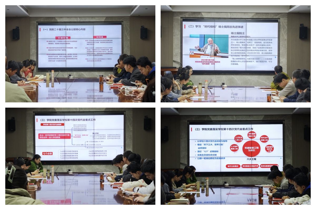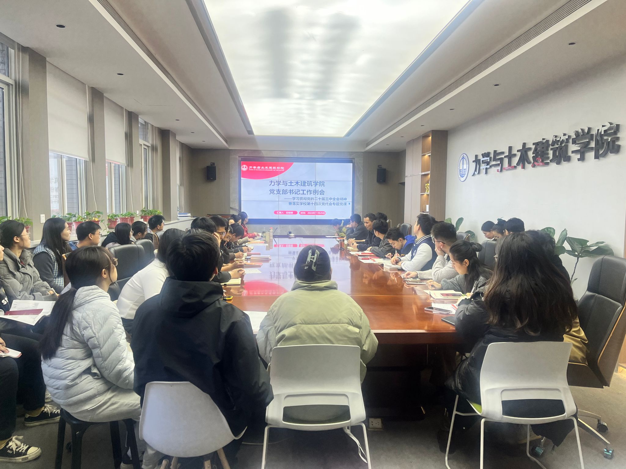 为深入学习贯彻党的二十届三中全会精神,落实学校第十四次党代会工作要求,11月25日下午,力学与土木建筑学院在206会议室组织召开11月党支部书记工作例会传达相关会议精神并对学院党委落实学校第十四次党代会重要工作进行安排部署,学院师生党支部书记、支部委员参加会议,会议由学院党委书记巨维博主持。