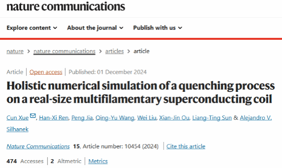 近日, 力学与土木建筑学院薛存副教授团队在高场超导磁体磁-热不稳定性研究方面取得重要进展。相关研究成果以题为“Holistic numerical simulation of a quenching process on a real-size multifilamentary superconducting coil”的论文形式发表在《Nature Communications》(自然•通讯),薛存副教授为该论文的第一作者和通讯作者。