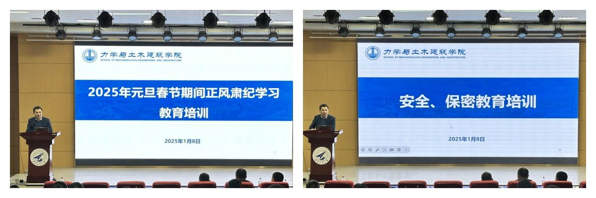 最后围绕2025年春节期间正风肃纪进行了警示教育并开展了安全、保密培训,与会人员观看了安全、保密教育宣传片,巨维博对寒假期间做好廉洁过节、保密、学生管理、实验室安全生产等工作进行安排部署。