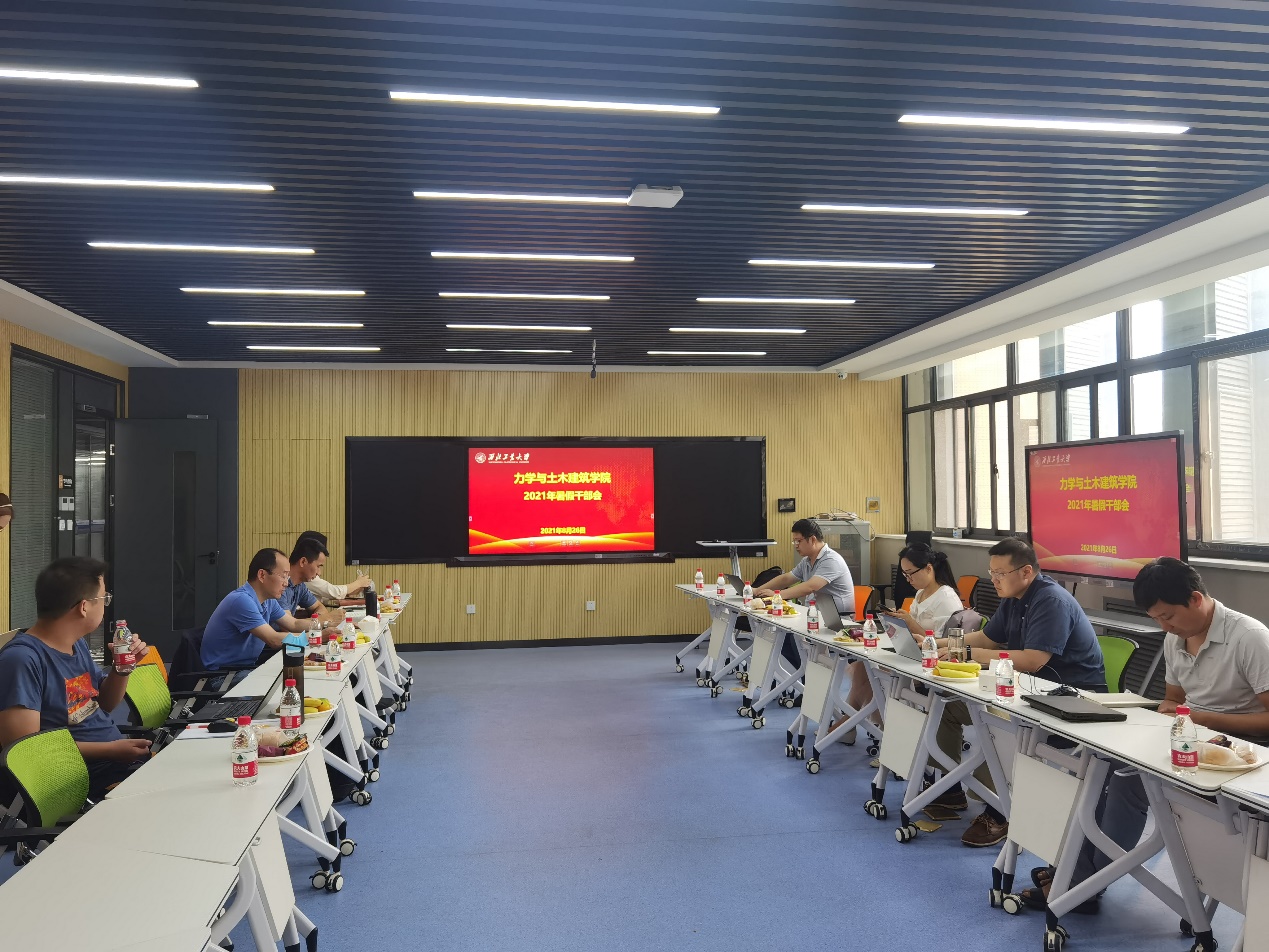 为进一步推进学院“双一流”建设,学院各项事业高质量发展,8月26日至27日,力学与土木建筑学院召开了2021年暑假干部工作会。会议就学院课程建设、课程思政推进、本科、研究生人才培养、学科建设、师资队伍建设、科研核心竞争力提升、党建工作以及2021下半年重点工作等有关内容逐一进行研讨。学院领导班子、系主任、支部书记、院长助理、实验室主任参加了会议,会议由学院党委副书记(主持工作)巨维博主持。