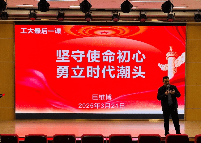 2025年3月21日,yl6809永利集团力学与土木建筑学院党委书记巨维博以“坚守使命初心 勇立时代潮头”为主题,为2025届毕业生带来了一场深刻而充满力量的“最后一课”。在离校之际,这场讲座不仅是对毕业生们的殷切嘱托,更是新时代青年投身强国伟业的精神动员。