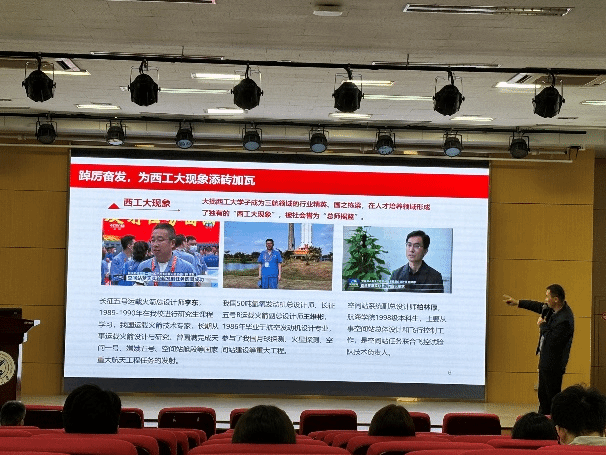 讲座中,巨维博老师以多位西工大杰出校友为例,诠释“西工大现象”的深刻内涵。巨维博表示,这些榜样激励着毕业生们以“顶天立地”的姿态投身科研——既瞄准前沿突破“卡脖子”技术,又让成果惠及民生。