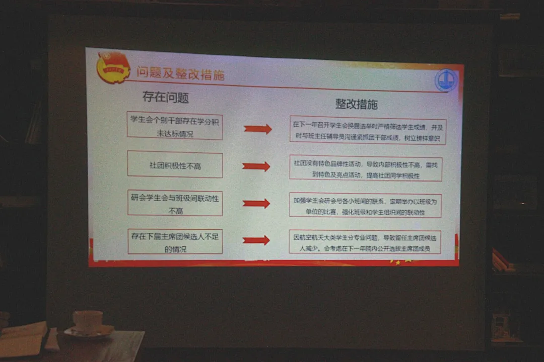 随后,李世洋老师对学院近期的团委工作进行了总结汇报。介绍了我院研究生会以及学生会的组织改革进度,并对院属社团“学科竞赛”的工作情况进行了汇报。随后对前期工作中存在的问题进行了分析。