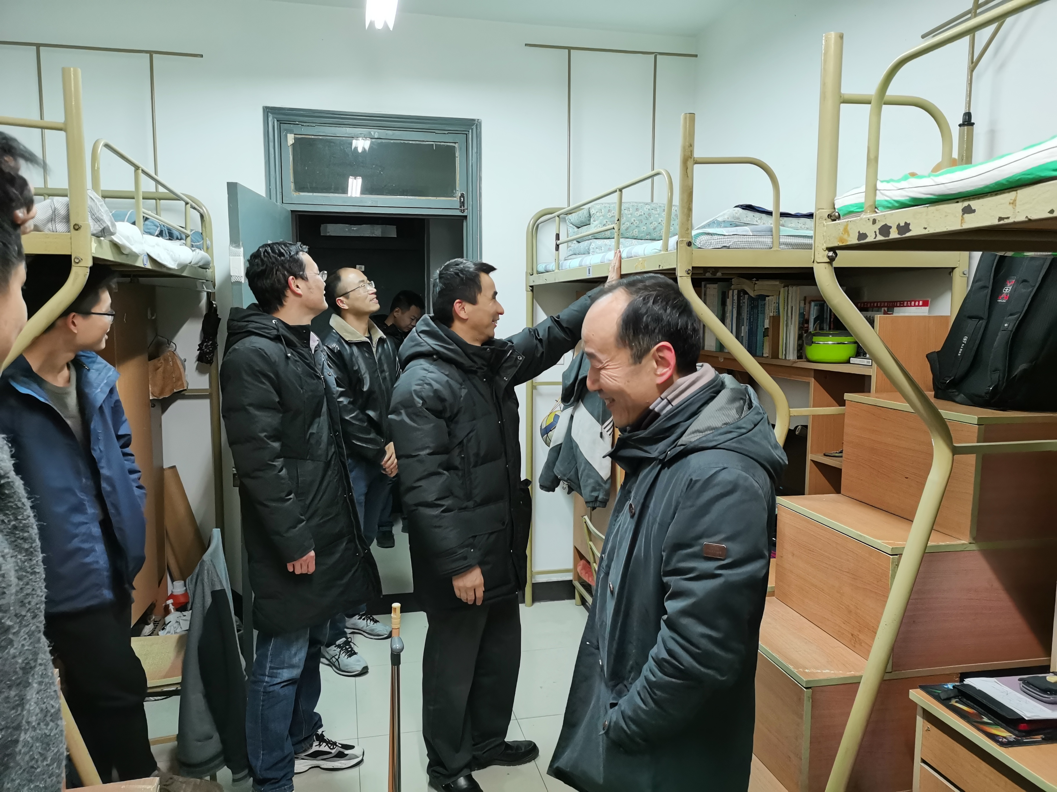离开教研室,学院领导们又来到了2017级与2018级本科生宿舍为他们带去了新一年的祝福与关怀。校领导向同学们表达了节日的问候和祝福,与学生亲切交谈,了解同学们的学习和生活情况,并祝愿同学们新春平安幸福,在新的一年里学业进步,身心健康。同学们被洋溢着浓浓元旦节日的气氛所感动,宿舍里一片欢声笑语,喜气洋洋。