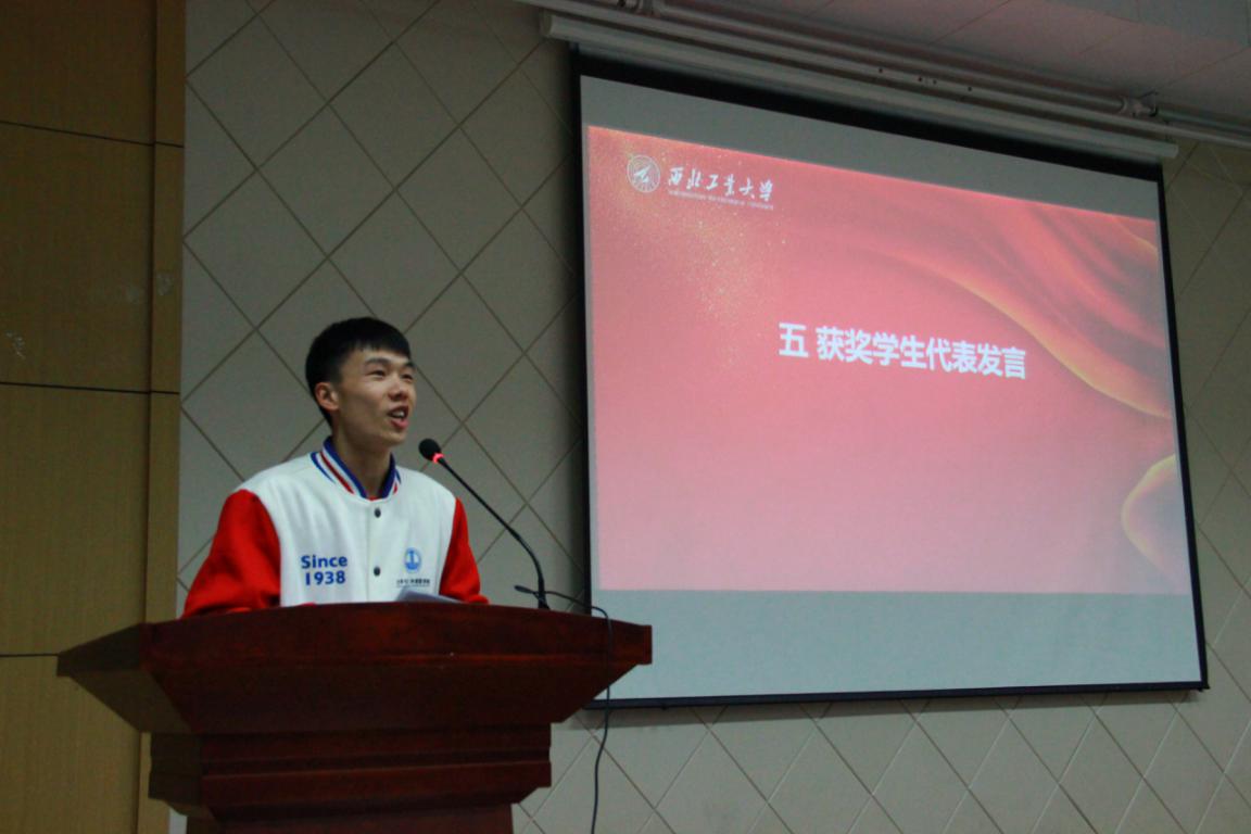 宣读完毕后,院长助理罗向阳主持了颁奖仪式,院长李栋教授、学院党委副书记(主持工作)巨维博、副院长张凯、学院党委副书记乔吉超、班主任代表李玉刚和张宝玺老师为获奖学生代表一一颁奖。