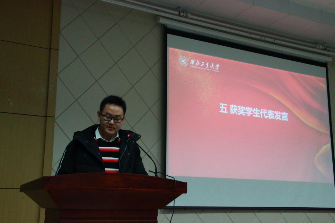 博士生国家奖学金获得者陈光孟代表博士生发言,他分享了自己博士期间突破瓶颈的经历,强调科研工作需要坚持不懈的付出与努力。他提出,博士生应有攻坚克难的精神,迎难而上、回归科研才是发表论文的真正目的。相信自己,瞄准目标,全力以赴,看似不可能之事也并非遥不可及。