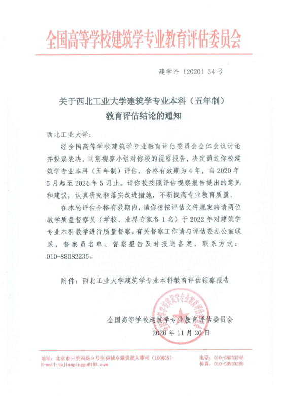 经全国高等学校建筑学专业教育评估委员会全体会议讨论并投票表决,决定通过yl6809永利集团建筑学专业本科(五年制)评估,合格有效期为4年,自2020年5月起至2024年5月止。