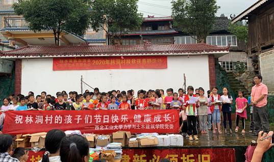 力学与土木建筑学院积极响应党中央号召,全力打好脱贫攻坚战。按照学校党委的统一部署,学院安排机关党支部,与广西融水县安太乡林洞村党总支结成共建支部,充分发挥支部共建联动作用,以党建引领带动精准脱贫。2019年,力学与土木建筑学院针对该村经济发展中存在的基础设施不完善、产业发展刚起步、发展动力和资金支持不足等问题,结合学院特色制度了一系列帮扶计划。学院师生捐赠图书共计500余本,在捐赠图书的同时邀请师生们书写个人寄语,通过书籍将浩瀚的知识与希望的力量带给孩子们。