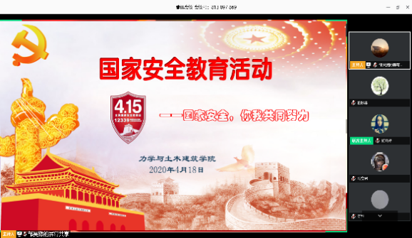 4月15日全民国家安全教育日当天,学院各个班级通过“QQ群课堂直播”、“钉钉”、“腾讯会议”等多种线上平台及形式开展班会,学习国家安全的相关法律法规,针对当前疫情情况,着重探讨了公共卫生安全、生物安全等方面。学生们联系自身实际,结合国家安全、爱国主义价值观培养、疫情防控等多个方面展开了热烈讨论。其中2017级硕士生贠铮表示,生物安全是国家安全的一个重要组成部分,与现代公共卫生安全有着密不可分的关系,近期疫情对于全球经济增长、国际赛事等活动都产生了很大影响,这也凸显出维护公共卫生安全和生物安全的重要性。参加完主题班会后,2018级本科生王璎珞说道,“虽然是和平年代,但也正是国家安全最需要维护的年代,我们应当树立坚定的国防意识,坚决意识到国家安全的重要性,并为之作出自己的努力”。通过线上主题班会的开展,让同学们感受到了国家安全与自己的生活言行息息相关,从而认识到:维护国家安全,需要从我们自己做起,从身边的点滴做起。