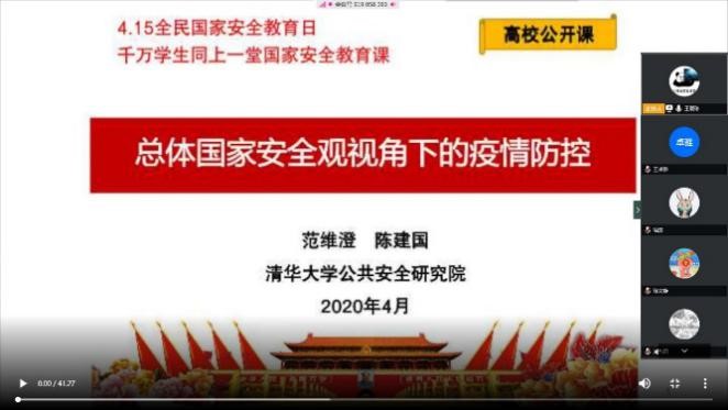 连日来,学院依靠党团支部活动、班团活动、新媒体平台等渠道,通过组织参加“千万学生同上一堂国家安全教育课”,组织收看在线视频、开展党支部线上专题研讨和分享,以班级为单位召开线上国家安全主题教育“云”班会,开展专题“云“团课等多种方式,深入开展“总体国家安全观”专题教育。